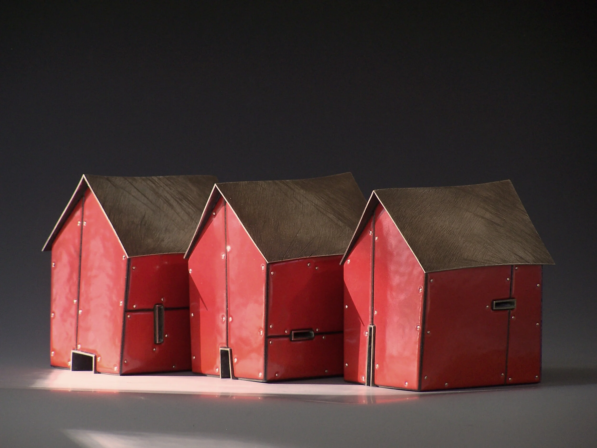 'Barns, October, 25' Sterling, copper, kiln-fired glass enamel. Aprx 11" tall. Available